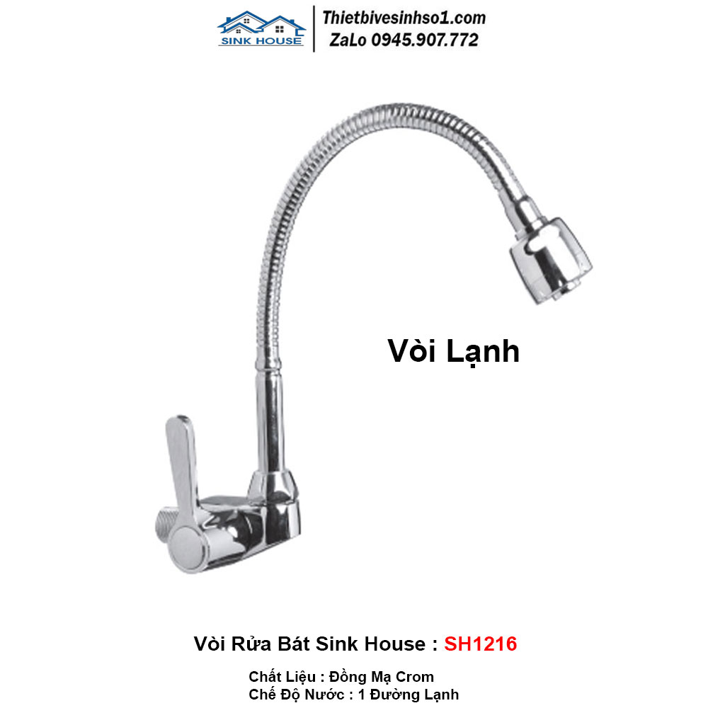 - Chế Độ Nước : 1 Đường Lạnh - Chất liệu: Đồng Mạ Cr/Ni - Hãng Sản Xuất : SINK HOUSE Chính Hãng - Model: SINK HOUSE SH1216 - Bảo Hành : 3 Năm