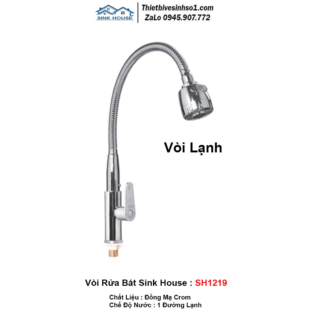 - Chế Độ Nước : 1 Đường Lạnh - Chất liệu: Đồng Mạ Cr/Ni - Hãng Sản Xuất : SINK HOUSE Chính Hãng - Model: SINK HOUSE SH1219 - Bảo Hành : 3 Năm