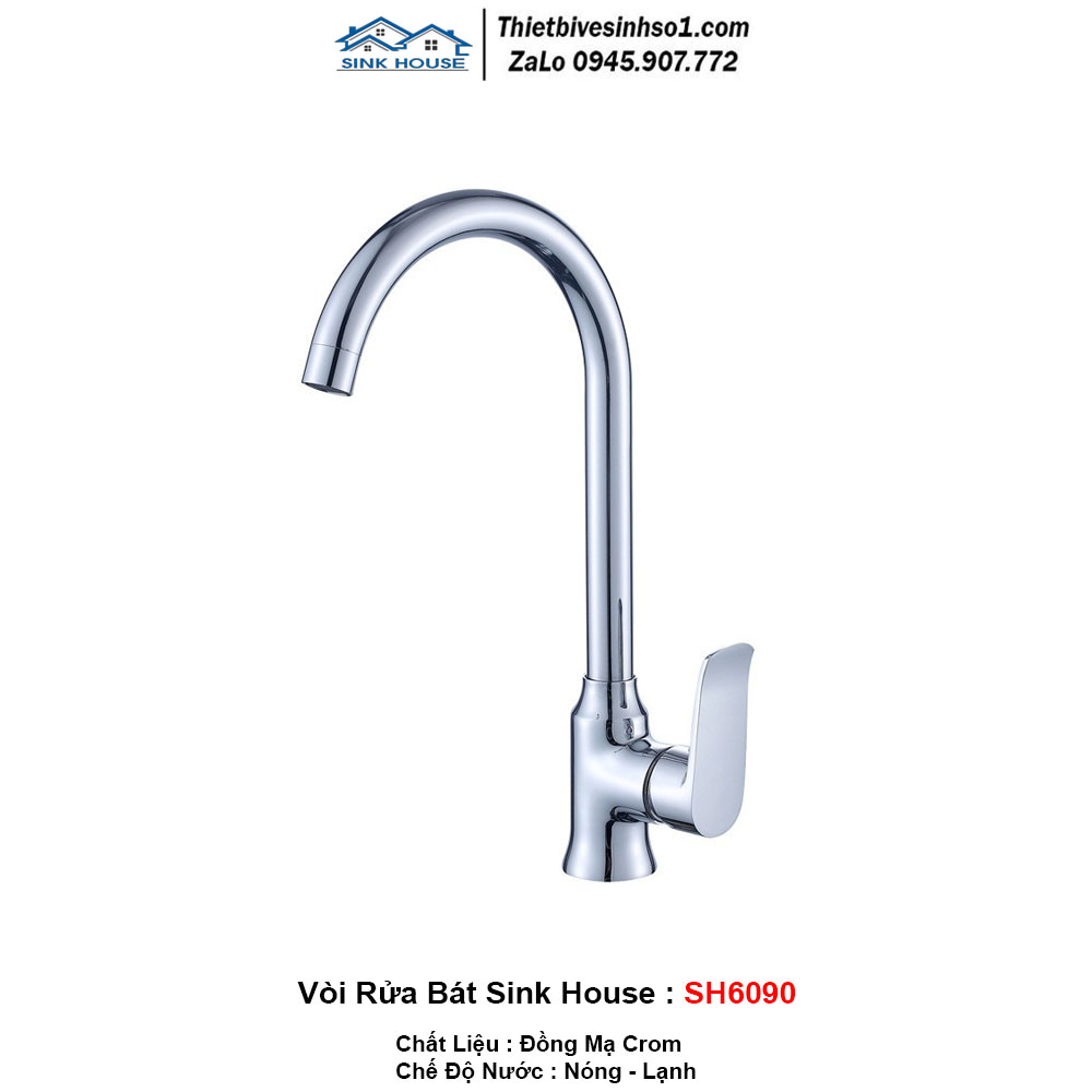 - Chế Độ Nước : Nóng - Lạnh - Chất Liệu: Đồng Mạ Crom - Hãng Sản Xuất : SINK HOUSE Chính Hãng - Model: Sink House SH6090 - Bảo Hành : Chính Hãng