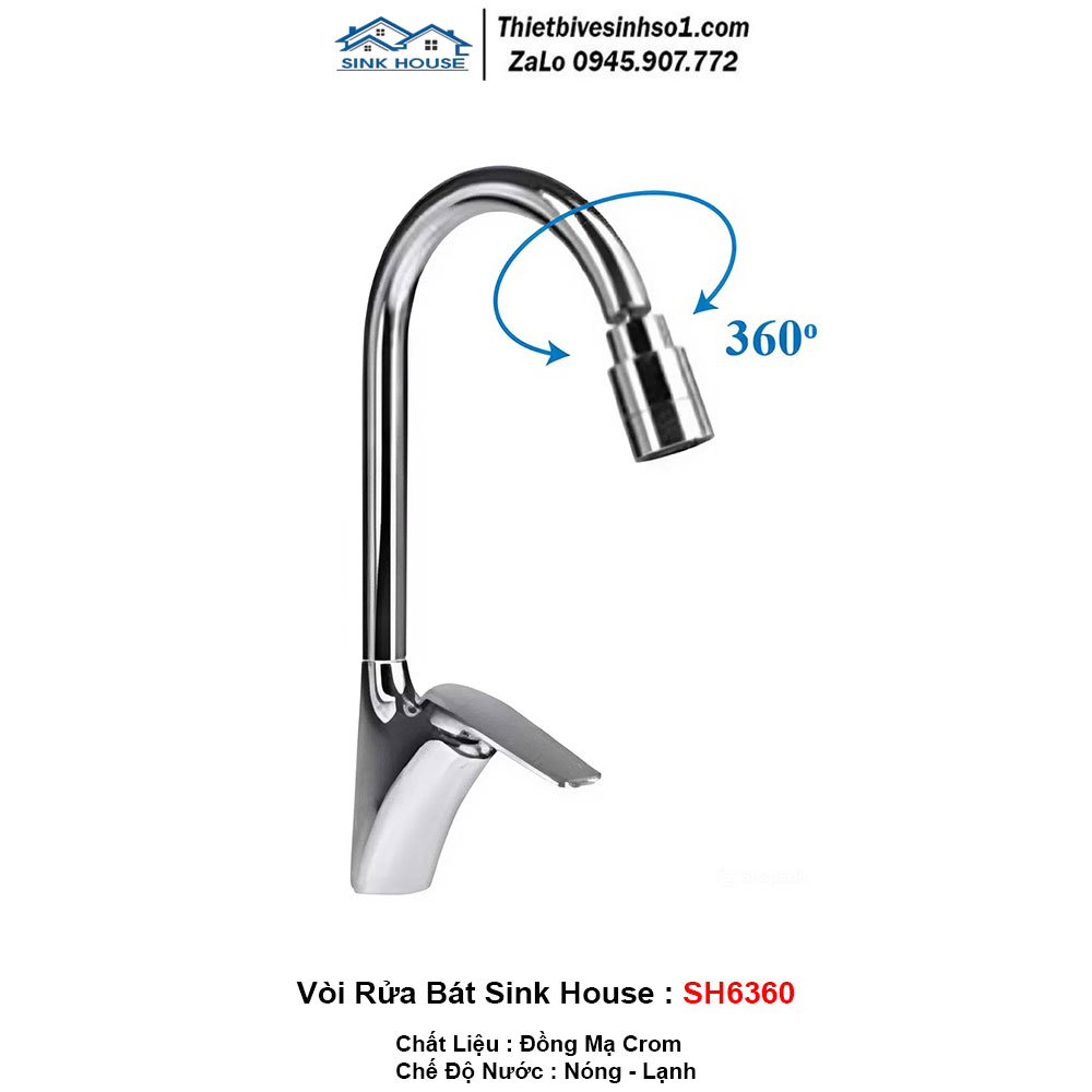 - Chế Độ Nước : Nóng - Lạnh - Chất Liệu: Đồng Mạ Crom - Hãng Sản Xuất : SINK HOUSE Chính Hãng - Model: Sink House SH6360 - Bảo Hành : Chính Hãng